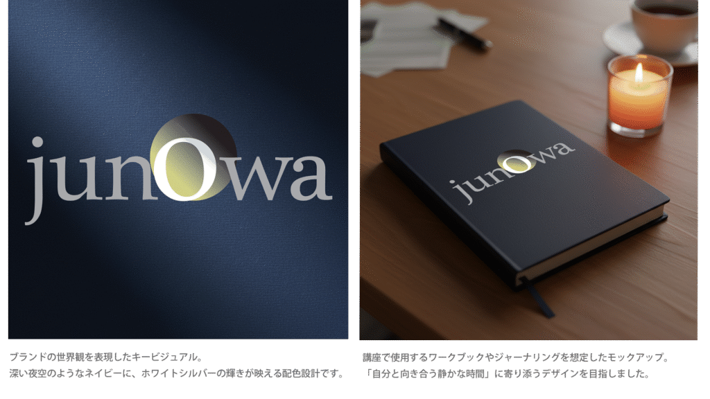 30〜50代の女性をターゲットとした、脳とホルモンの仕組みから自己理解を深める新規講座「junowa(ジュノワ)」のロゴ制作 。
